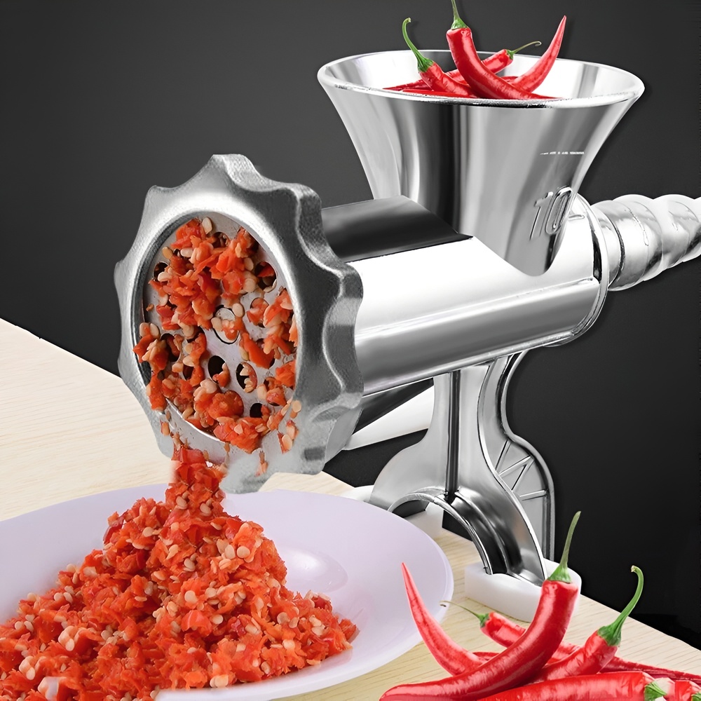 🥩Tražite praktičan i efikasan način da pripremite sveže mleveno meso, kobasice ili začinsko bilje kod kuće? Ova Ručna Mašina za Mlevenje Mesa 10 od nerđajućeg materijala je vaš idealan kuhinjski pomoćnik.